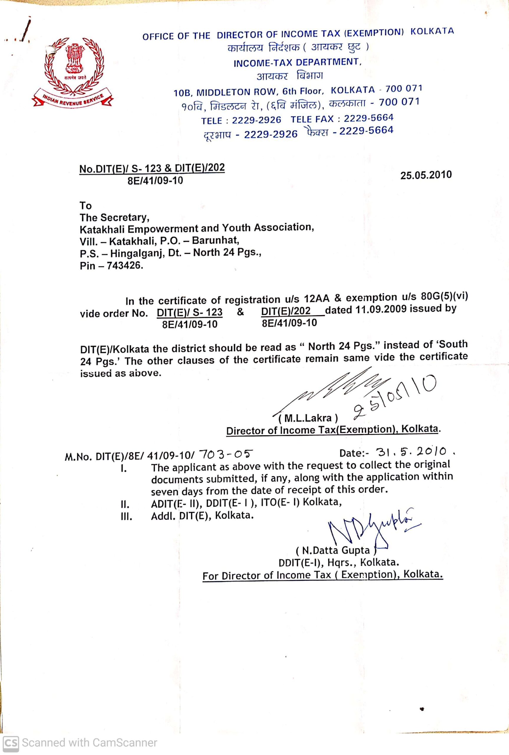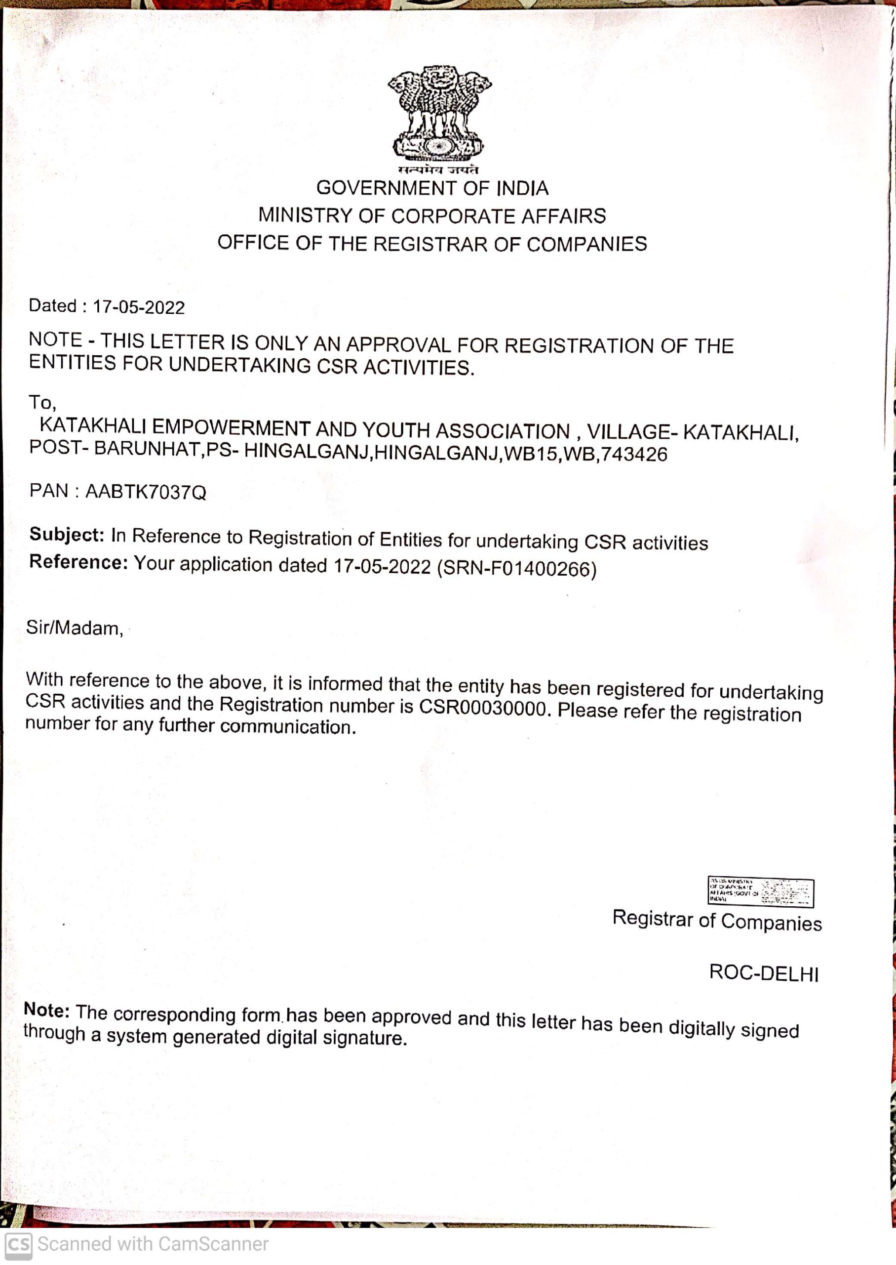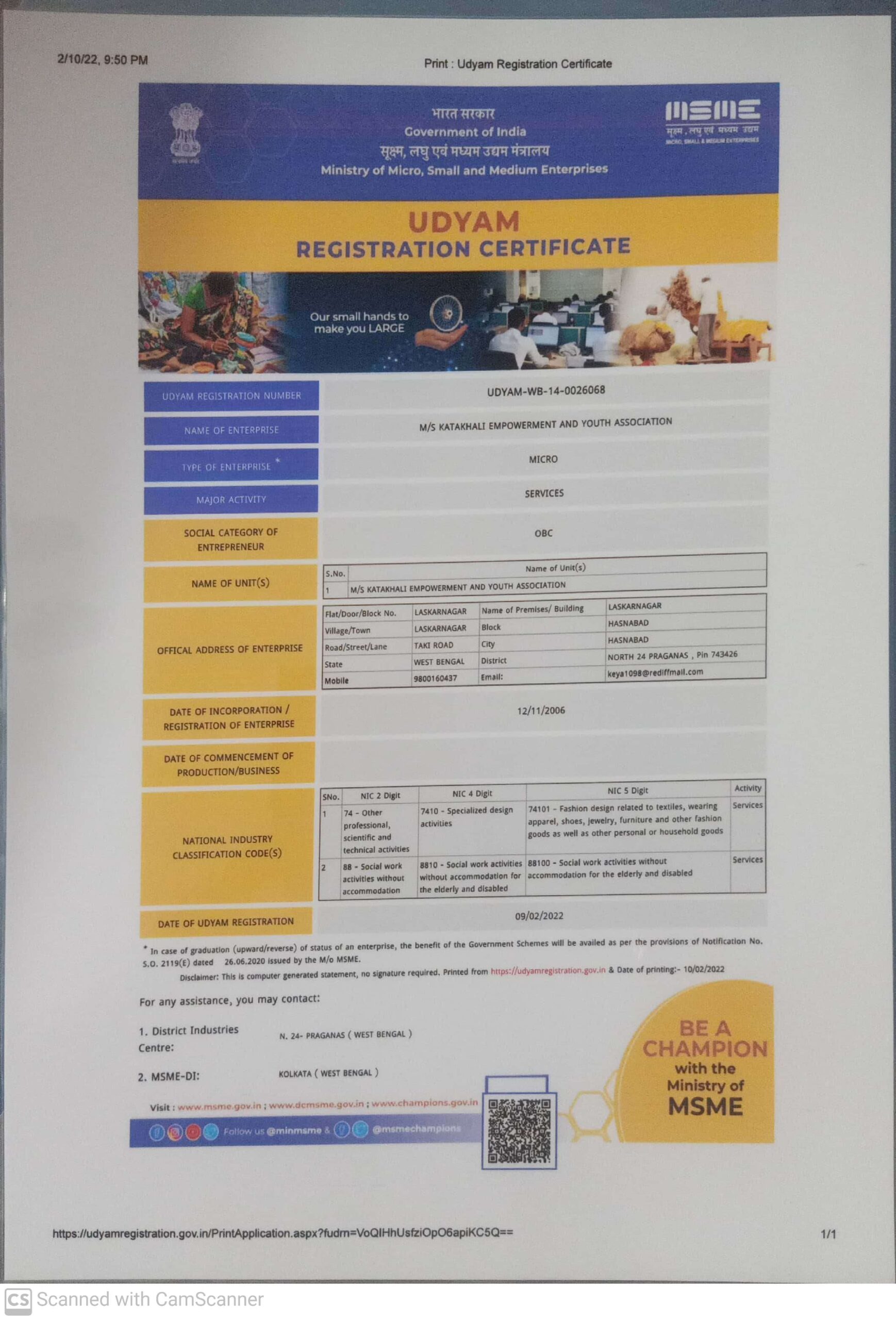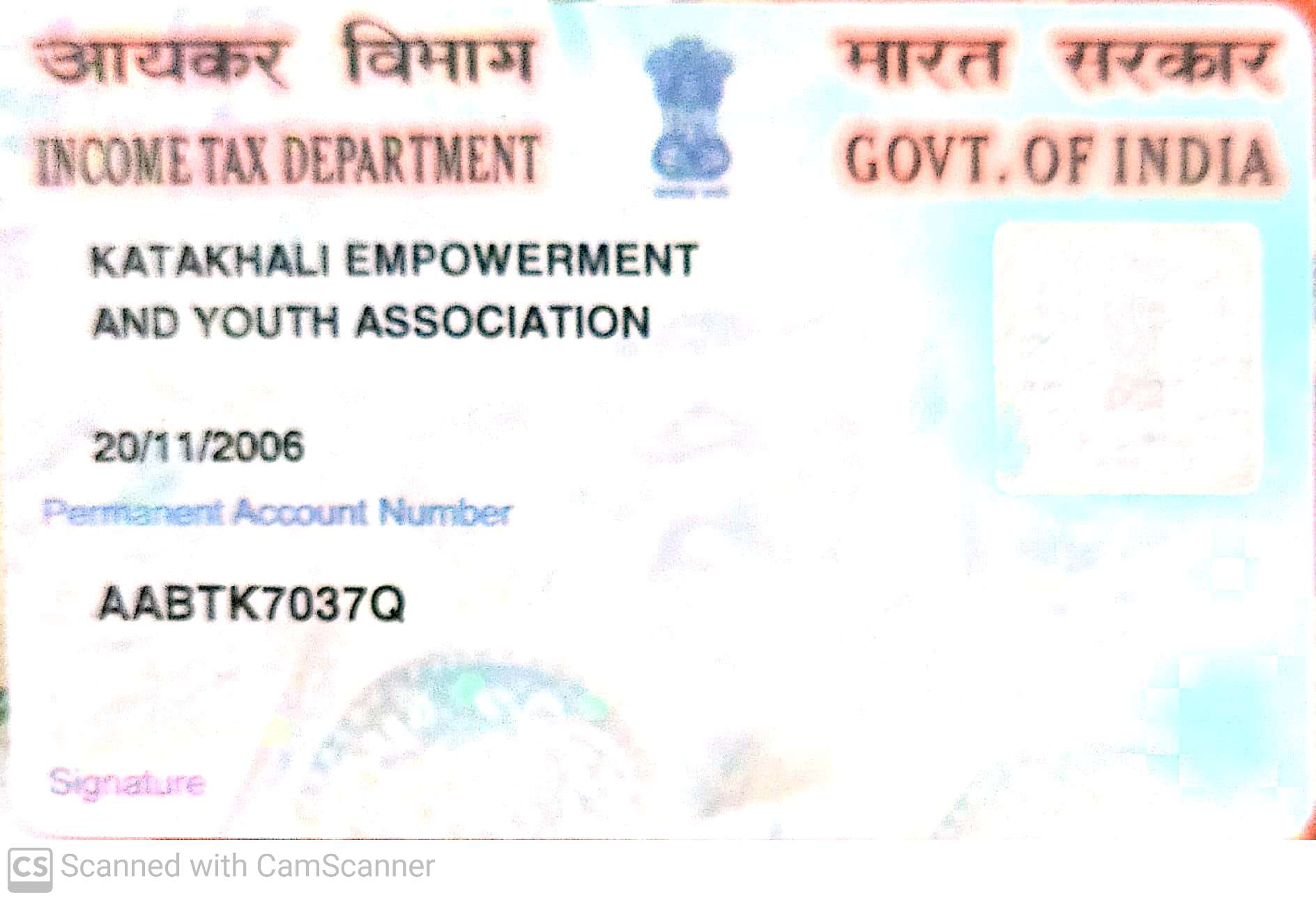 Documents Gallery Katakhali Empowerment and Youth Association Registration Pan Card 12A & 80G Certificate CSR Certificate UDYAM Registration